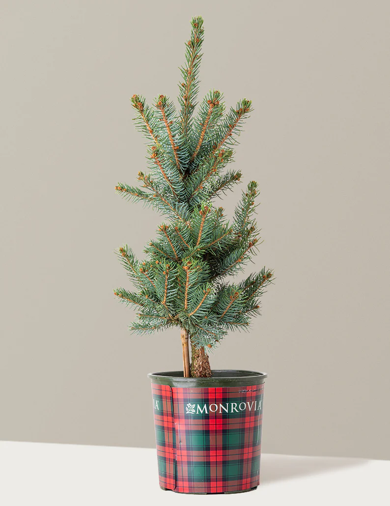 Our favorite part? This spruce comes decorated with festive, plaid container wrapping to make gift-giving as easy as can be! The wrap comes off after the holidays so you can continue enjoying your plant.