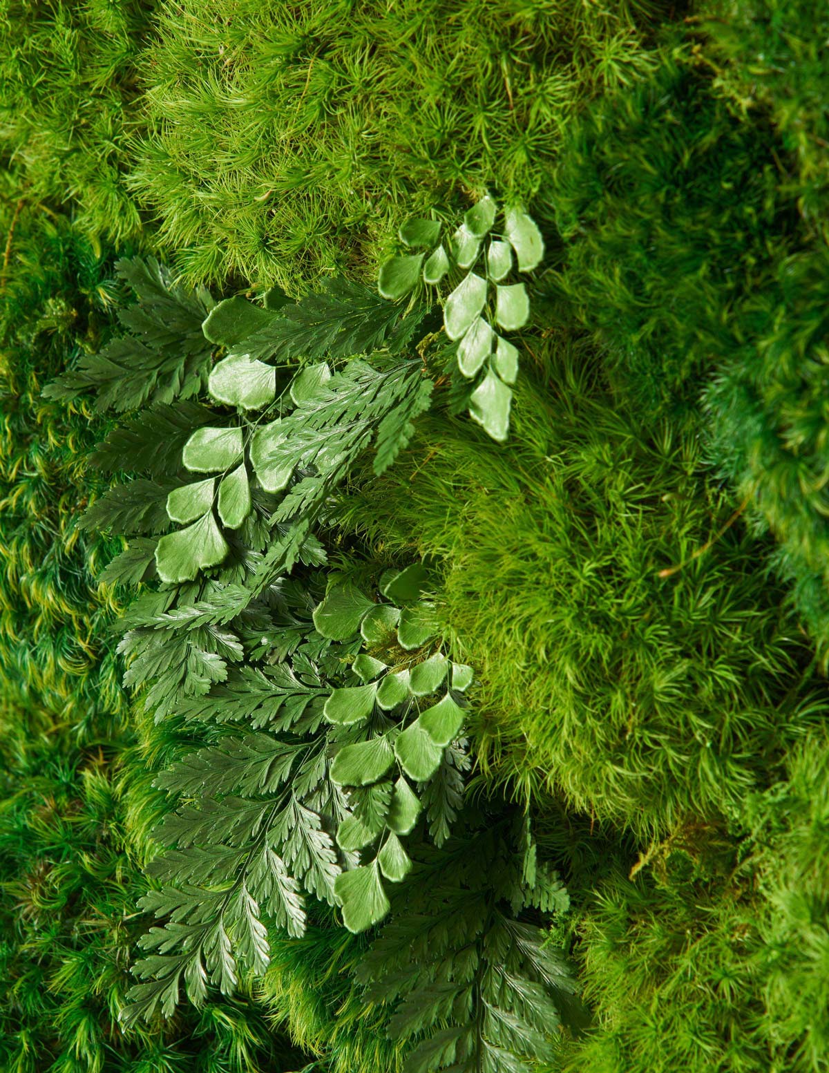 This zero maintenance large 'living wall' will liven-up any interior space. A combination of moss and ferns preserved in their prime, there is no upkeep necessary – simply hang and enjoy. These are real plants that have been naturally preserved. Each piece is handcrafted and unique – natural variations will occur. There might be a slight odor upon unpacking your living wall, but it will subside in about 3 weeks. Keep it out of direct light and never water.